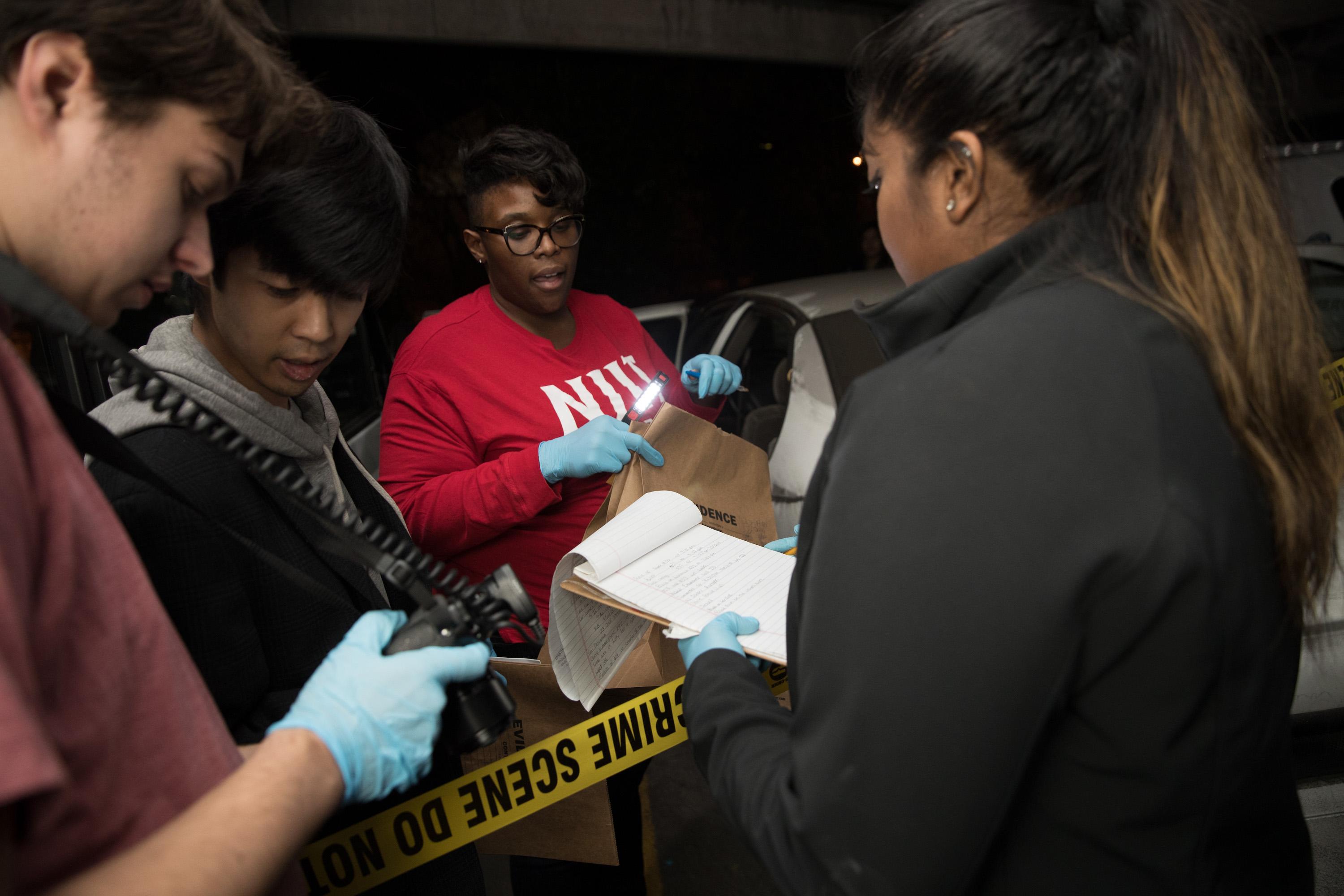 All the evidence they’ve collected throughout the night — from prints and bullet casings to soft drink bottles — gets packed up and can be analyzed back at the university’s new forensic laboratory in Tiernan Hall.