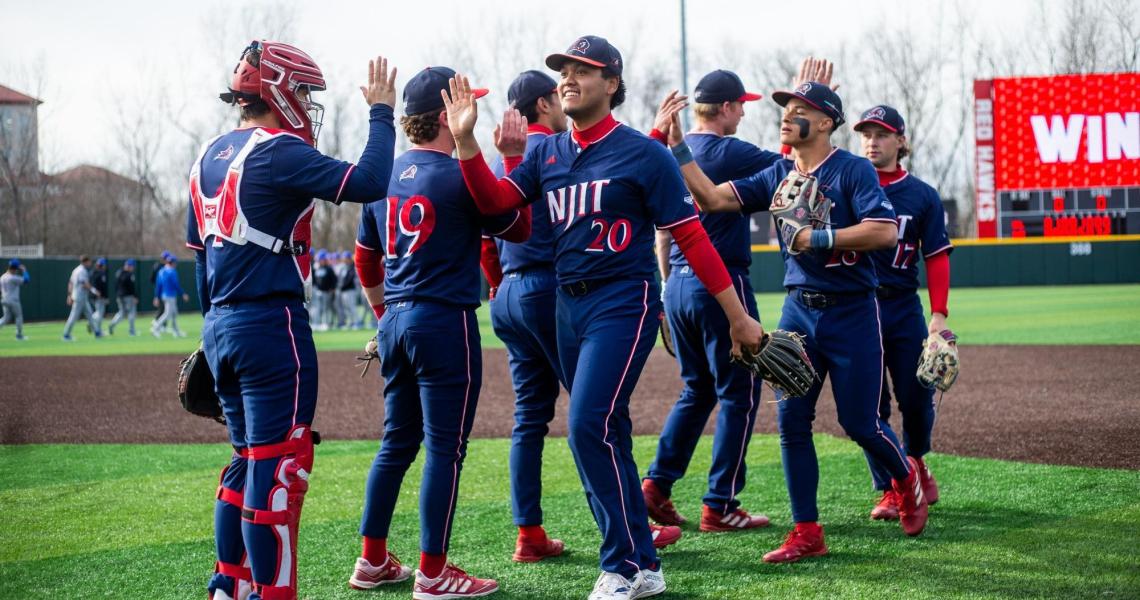 The NJIT baseball team broke an 8-8 tie with five runs in the top of the ninth and held off host UMass Lowell in the bottom half of the inning to win 13-10 and take the three-game America East series from the River Hawks.