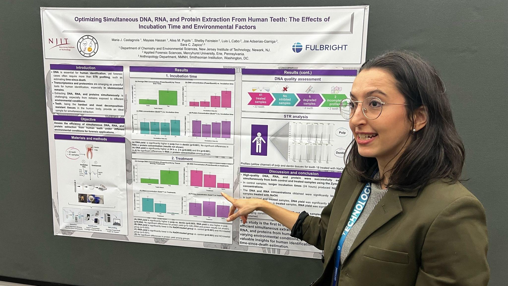 Meanwhile, Maria Josefina Castagnola, a Ph.D. student and Fulbright scholar working with Zapico, showcased new research on DNA extraction, demonstrating how environmental factors and incubation time can impact the simultaneous extraction of DNA, RNA and protein from human teeth. The research could improve forensic scientists’ ability to gather more comprehensive genetic evidence from limited biological samples during challenging investigations.